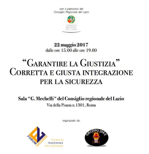 A queste domande cerca una risposta il convegno Garantire la Giustizia: corretta e giusta integrazione per la sicurezza, che si terrà il 22 maggio nella sede del Consiglio Regionale del Lazio con il patrocinio del Consiglio stesso.