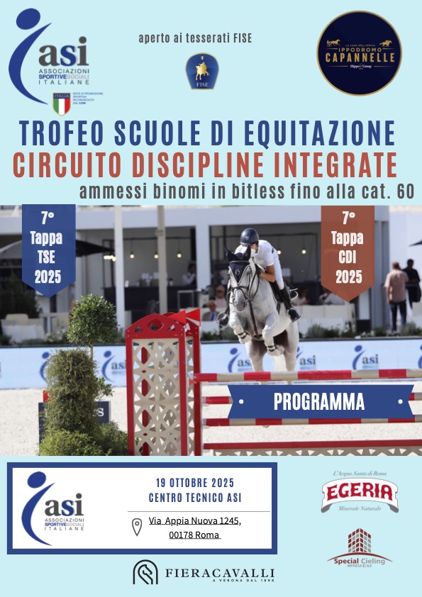 7° tappa Trofeo Scuole di Equitazione /Circuito Discipline Integrate (C.T. ASI – IPPODROMO CAPANNELLE – RM)