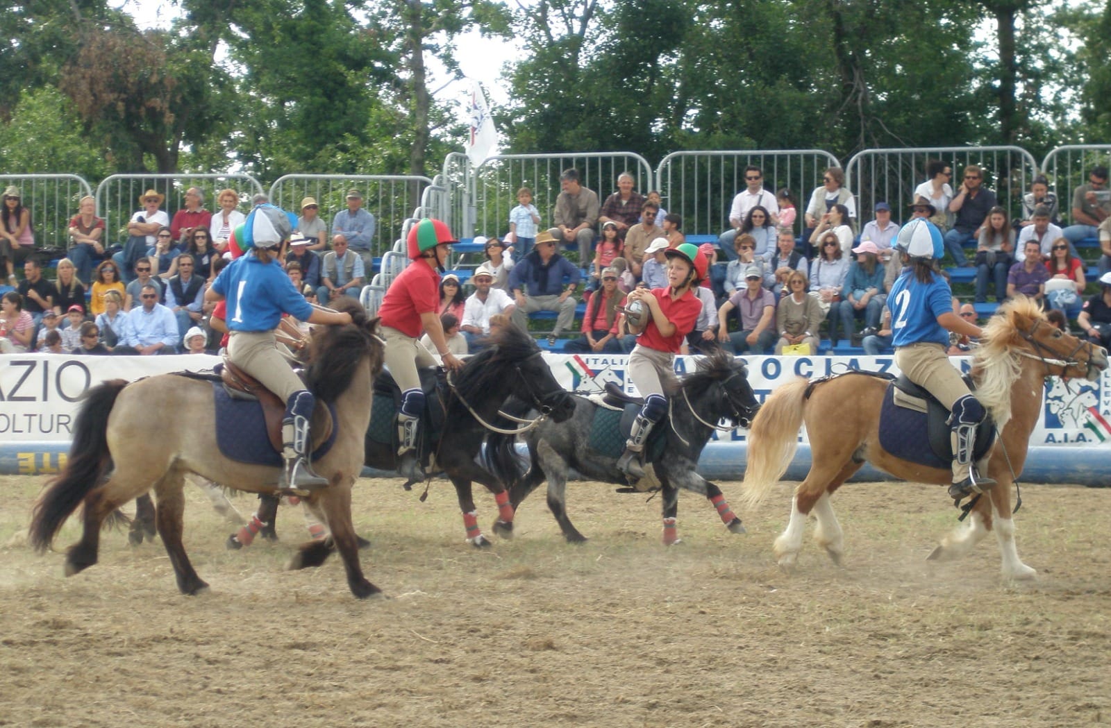 L’Horse-Ball contrappone due squadre di sei cavalieri che, senza mai scendere da cavallo, devono raccogliere da terra una palla provvista di sei maniglie in cuoio, con lo scopo, mediante un gioco di passaggi di attacchi e di difesa, di lanciarla attraverso il canestro avversario fissato all’ estremità del campo.